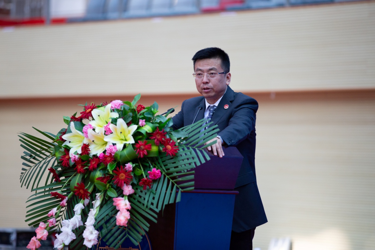 在校生代表2017级王子琦,新生代表于苏、杨芳、魏源依次在典礼上做了发言。