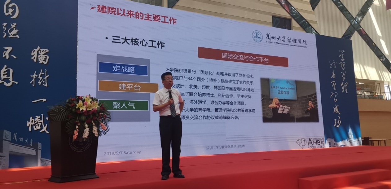 9月7日上午,管理学院2019级研究生开学典礼结束后,院长何文盛教授和主管研究生教育副院长吴建祖教授先后为同学们做了专题报告。何院长以《以管理创新谋求更大发展——兰州大学管理学院发展之路》为题,向同学们讲述了管理学院创新发展的非凡之路,分享了自己对管理教育的一些思考,提出了三个引人深思的问题:为什么报考兰大管理学院?经过几年研究生的学习后,将来想从事何种职业?为实现第二个目标,怎样规划设计和行动?引发大家对于如何度过充实而美好的研究生生活的思考。