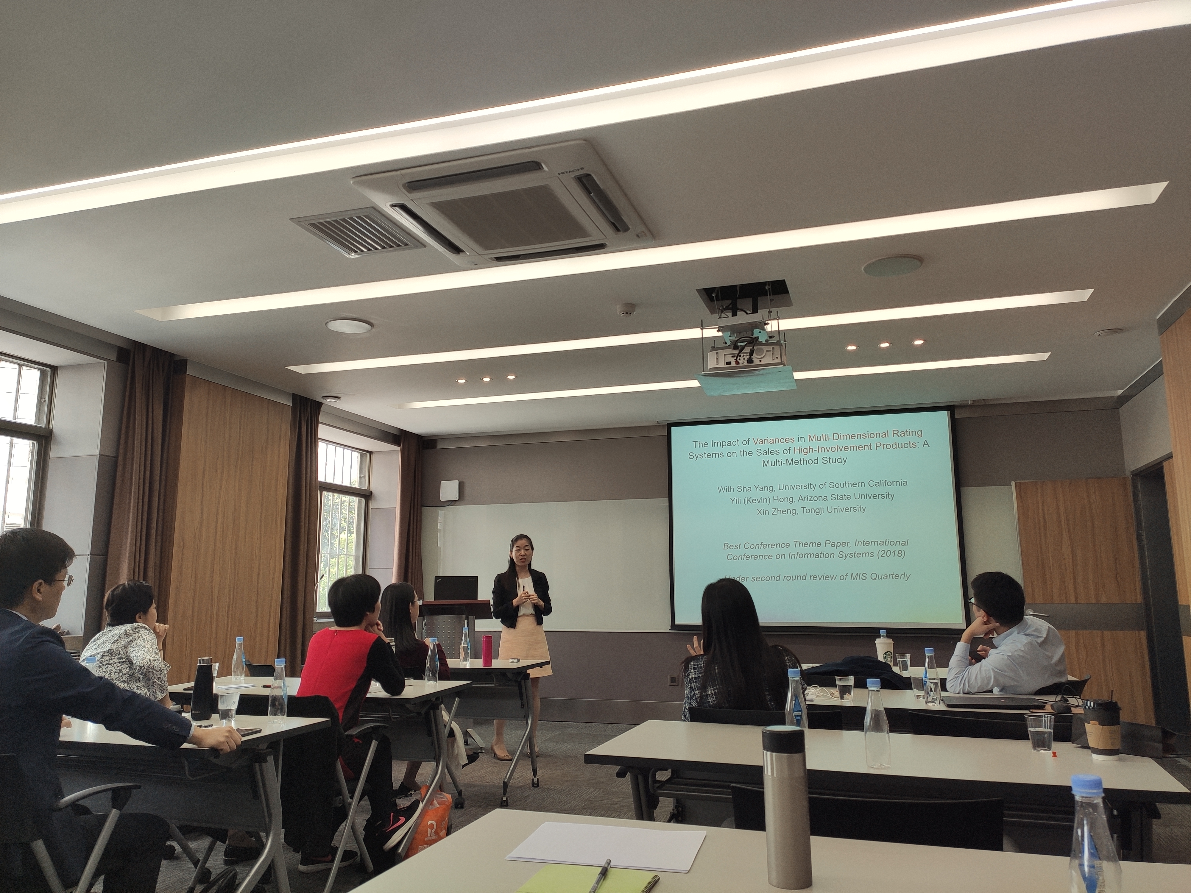 任星耀副教授首先分享了关于多维度评分系统中的差异对高卷入度产品销售的影响的研究,她介绍了研究背景、理论支撑,研究中二手数据的来源、匹配、分析以及对实验产品的选择和分类。随后,任星耀副教授指出商家应仔细选择高卷入度产品的维度以及区分产品的类型,这也为在线评论平台提出了一定的实践指导。接下来,任星耀副教授分享了关于电商平台在双向使用者互相沟通中是否会受益的研究,该研究分解了使用者沟通的四种类型,探索了四种类型的相对效应,并给电商平台提供了一定的实践指导。