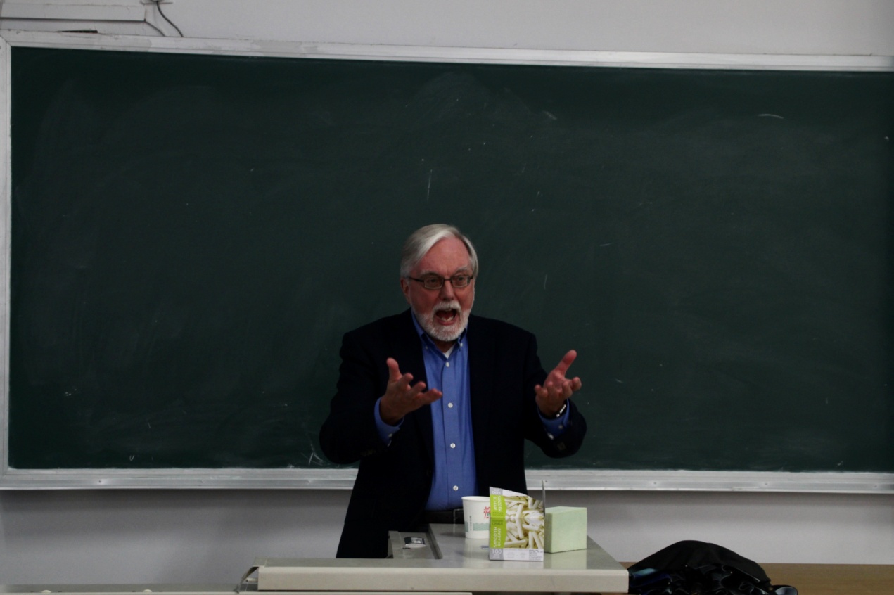 讲座伊始,Rayner教授引导同学们从三个方面去思考政策分析,即为什么要学习政策分析、后真相时代的政策分析要点和政策分析要面临什么问题。Rayner教授强调:一个国家与地区能否在各种竞争中取得优势地位,在相当程度上取决于政府对社会实行有效管理的水平。公共政策是政府行为的直接产品,所以人民不仅关心政府政策是如何制定的,而且还关心政策是如何执行的,以及如何评价政策的实施效果。正是基于这些原因,学习“政策分析”十分有必要。而关于后真相时代的政策分析要点则是:真相并不像看上去那么简单。每个故事都有多面性,如一个人可以通过各种方式描述一个人、一起事件、一件事情或一项政策,并且这些描述可能具有同等的真实性。最后,JRayner教授提出,目前政策分析要面临的问题有:解决政策问题的途径和社会问题等。参加讲座的学生对Rayner教授所讲述的三个问题都非常感兴趣,向Jeremy David Rayner教授提问有关政策分析的问题,大家踊跃提问,激情高涨,现场气氛十分活跃,Rayner教授也十分耐心地回答了大家提出的问题。