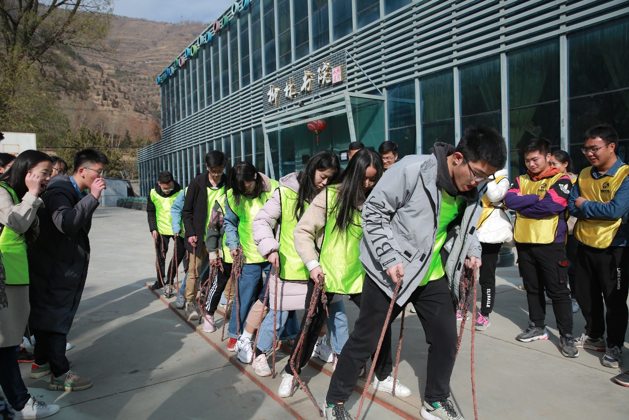 上午,学员们在训练基地进行了开营活动,主要包括放松训练、“姓名接龙”游戏、团队组建等内容。两支队伍分别定名为“原谅队”和“美团队”,顺利完成了所有团建活动。开营活动结束后,大家体验了“大脚板”这一训练项目。