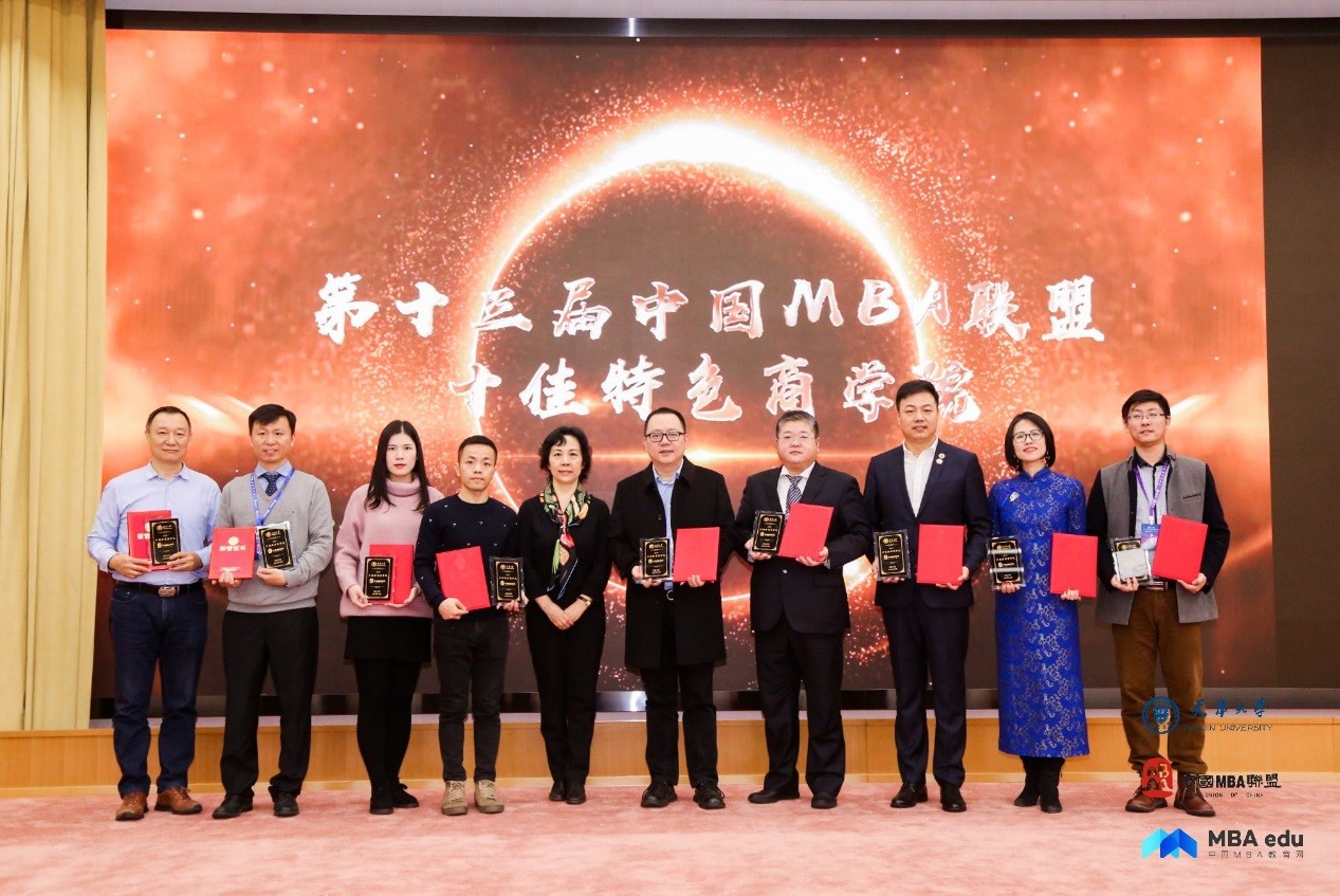 本次盛会,管理学院喜获八项奖项:十佳特色商学院;何文盛院长荣获中国MBA联盟2019年度“中国MBA院校卓越领袖奖”;张若勇老师获得中国MBA优秀指导老师和最受欢迎教授奖;马明君、胡罡、张永康获得中国MBA优秀干部奖;朱芳芳获得中国MBA新锐100奖。
