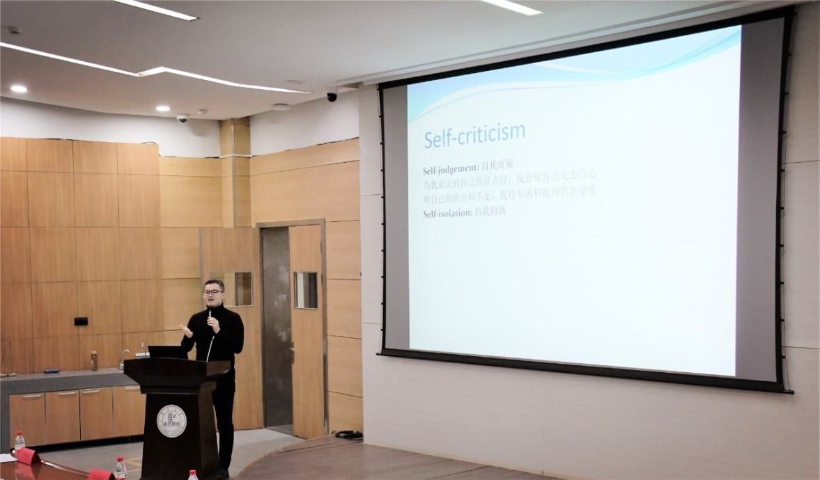 闭幕式上,马捷老师首先做了题为“自我怜悯:积极的自我态度”的学术分享。他结合研究成果,深入浅出地阐释了“自我怜悯”态度在个体应对挫折、困难时的积极作用。