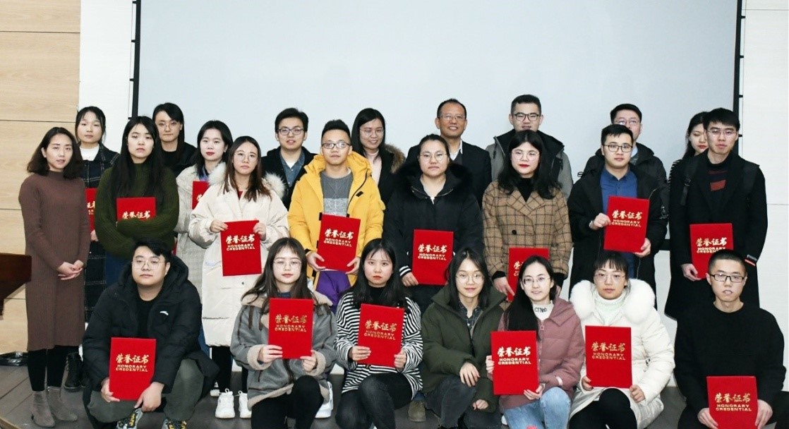 在颁奖环节,牛琬婕博士、曲宗希博士和吴建祖教授依次为获奖同学颁奖并合影留念。