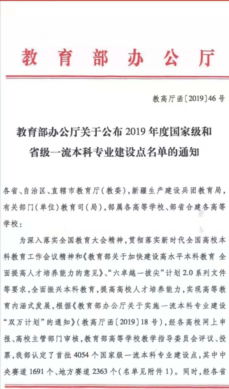我院四个本科专业入选2019年度国家级和省级一流本科专业建设点