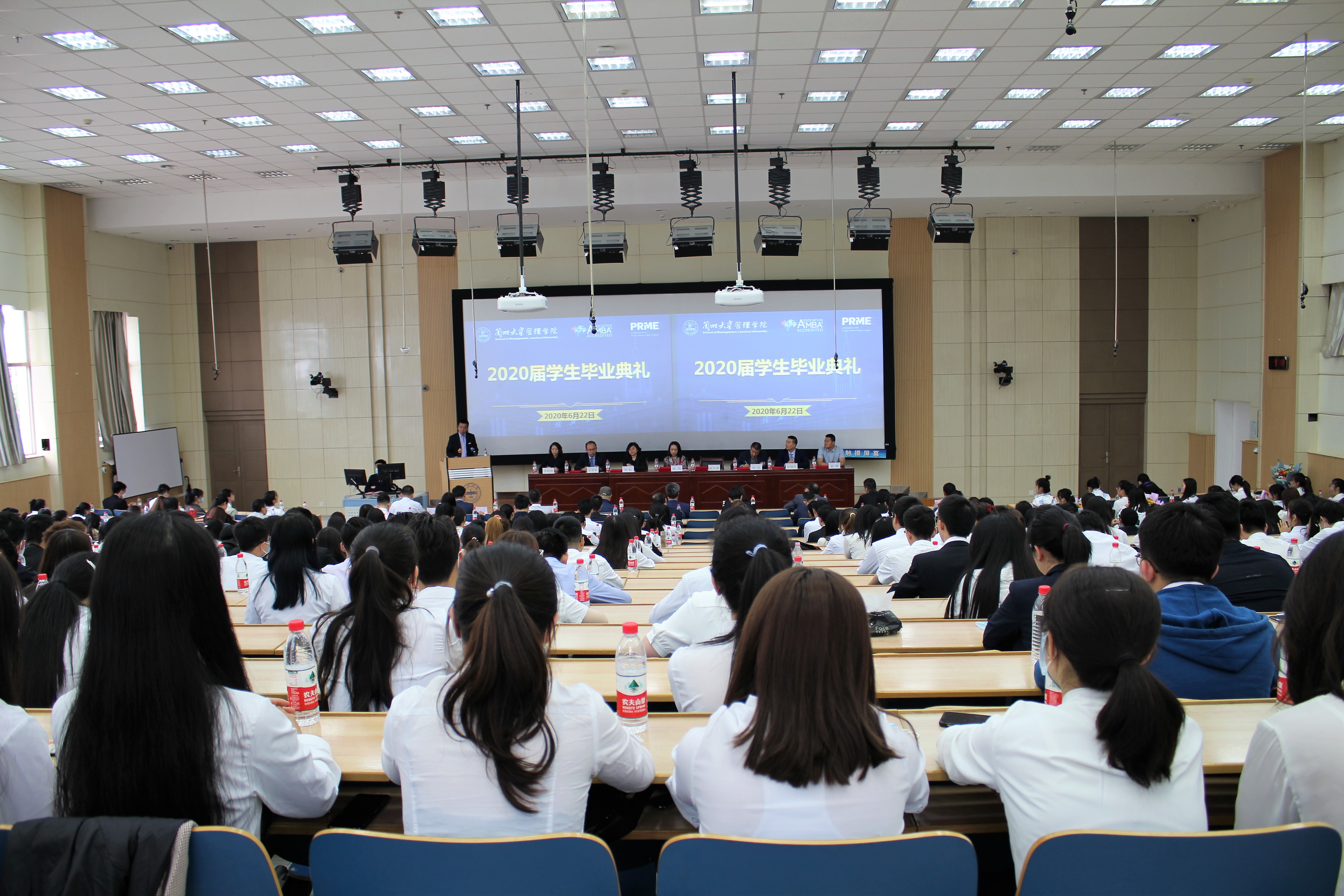6月22日上午,管理学院2020届学生毕业典礼在榆中校区天山堂C301隆重举行。兰州大学教师教学发展中心主任韩伟、学生处副处长常虹、校团委副书记赵赟,学院领导班子成员、校友代表、教师代表,学生辅导员、教学秘书以及2020届毕业生共300余人参加了典礼。典礼由学院党委副书记李艳霞主持。
