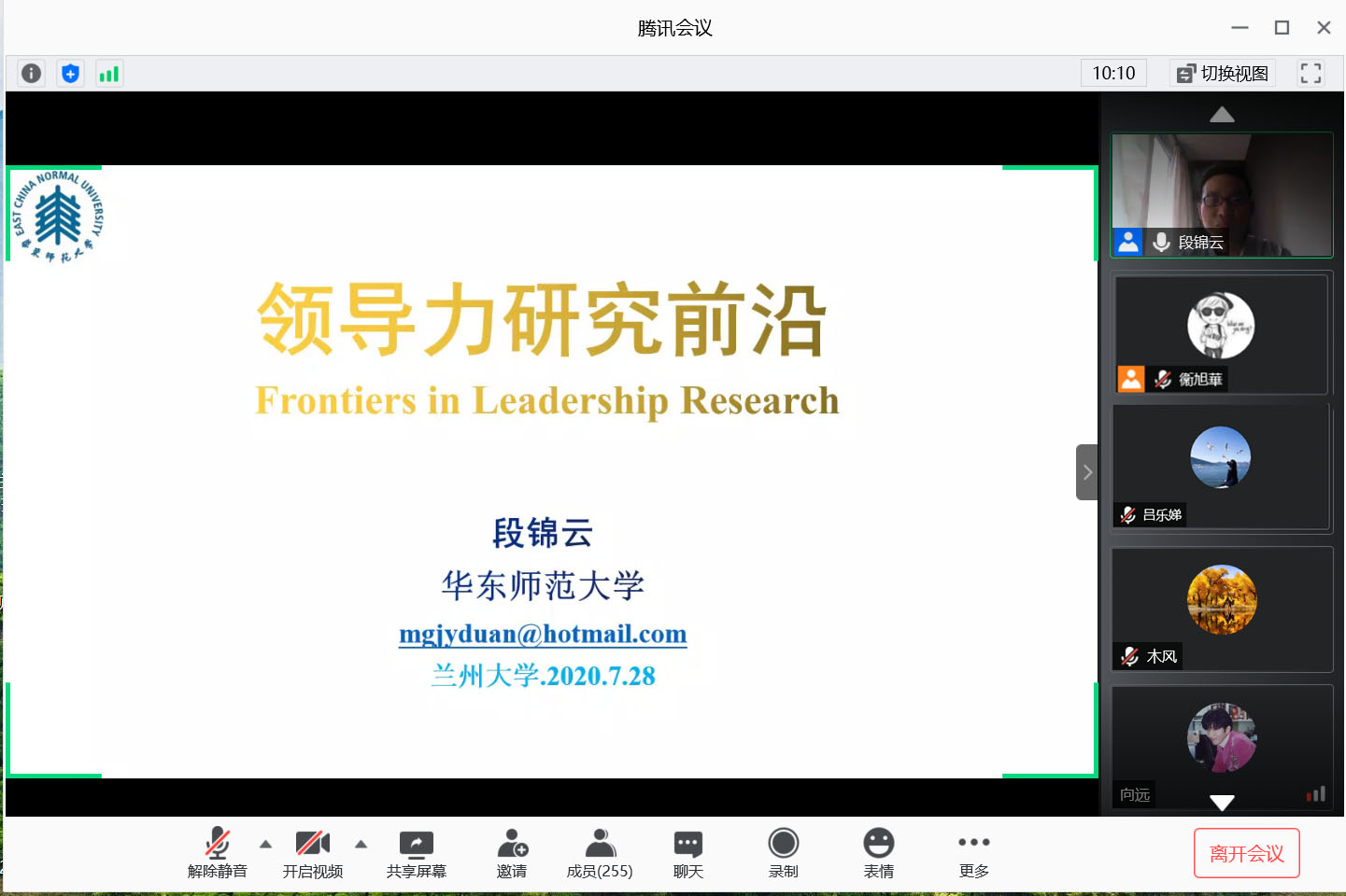 2020年7月28日下午,管理理论前沿系列讲座第34期以线上会议的方式顺利举行,华东师范大学心理与认知科学学院教授、紫江青年学者段锦云教授开展了以“领导力研究前沿”为主题的学术讲座,来自兰州大学、中国人民大学、浙江大学等高校的三百位师生参加了此次讲座,讲座由战略与组织管理研究所卫旭华教授主持。