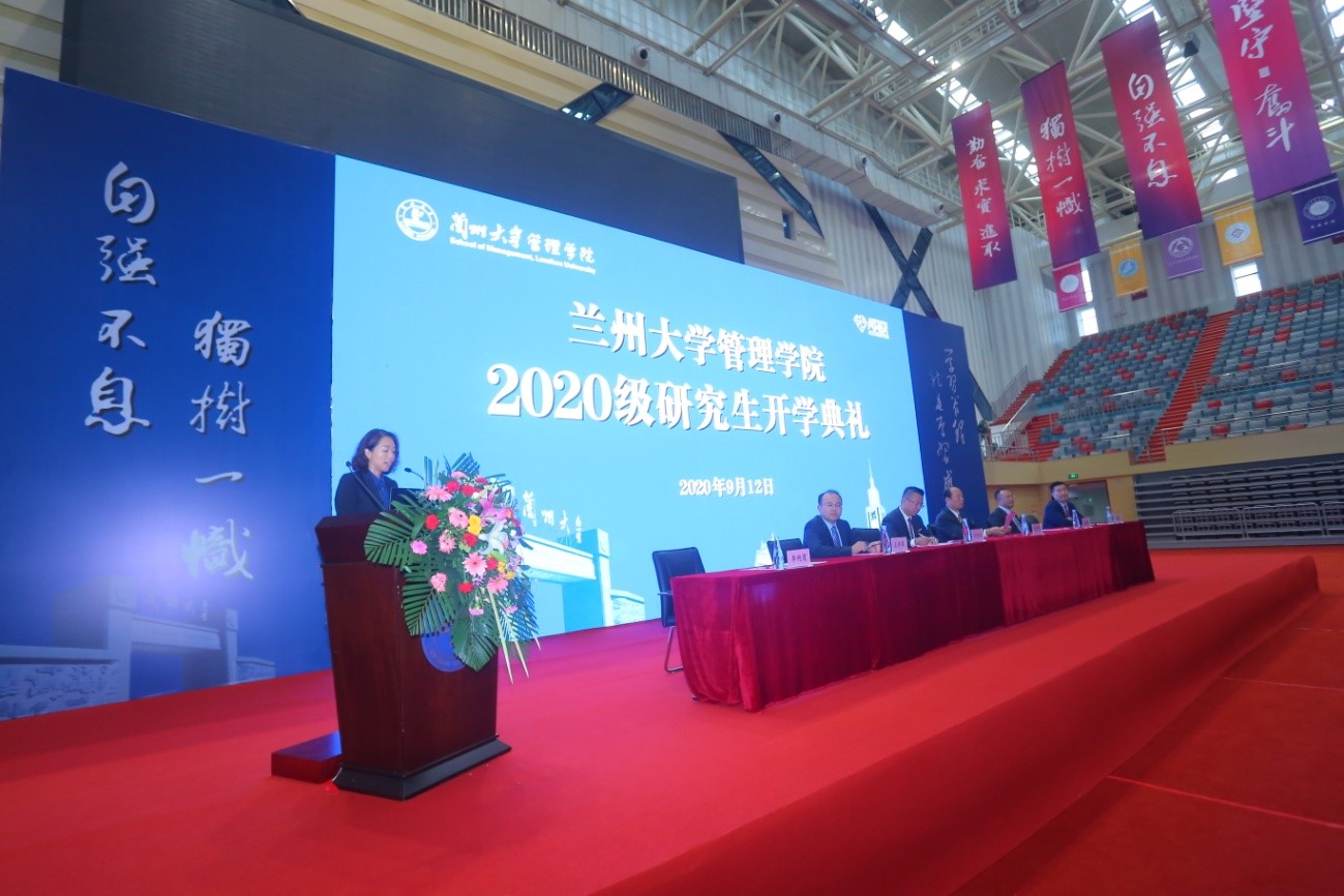 9月12日上午,管理学院2020级研究生开学典礼在城关校区西区新体育馆顺利举行。名誉院长包国宪、院长何文盛,副院长吴建祖、王学军、苗绪亮,党委副书记李艳霞,教师代表,辅导员,2020级研究生、在校生代表近900人参加了开学典礼。典礼由党委副书记李艳霞主持。