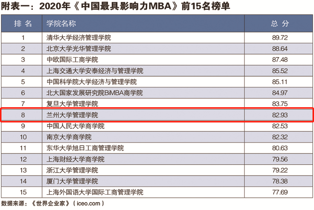 “中国最具影响力MBA排行榜”:兰州大学管理学院连续12年进入10强!