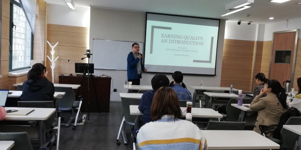 2020年10月16日下午,应管理学院运营与财务管理研究所王雷博士邀请,深圳大学经济学院顾俊博士来我院开展了以“当代会计理论述评:从会计信息质量入手”为主题的学术讲座,讲座由罗劲博教授主持。