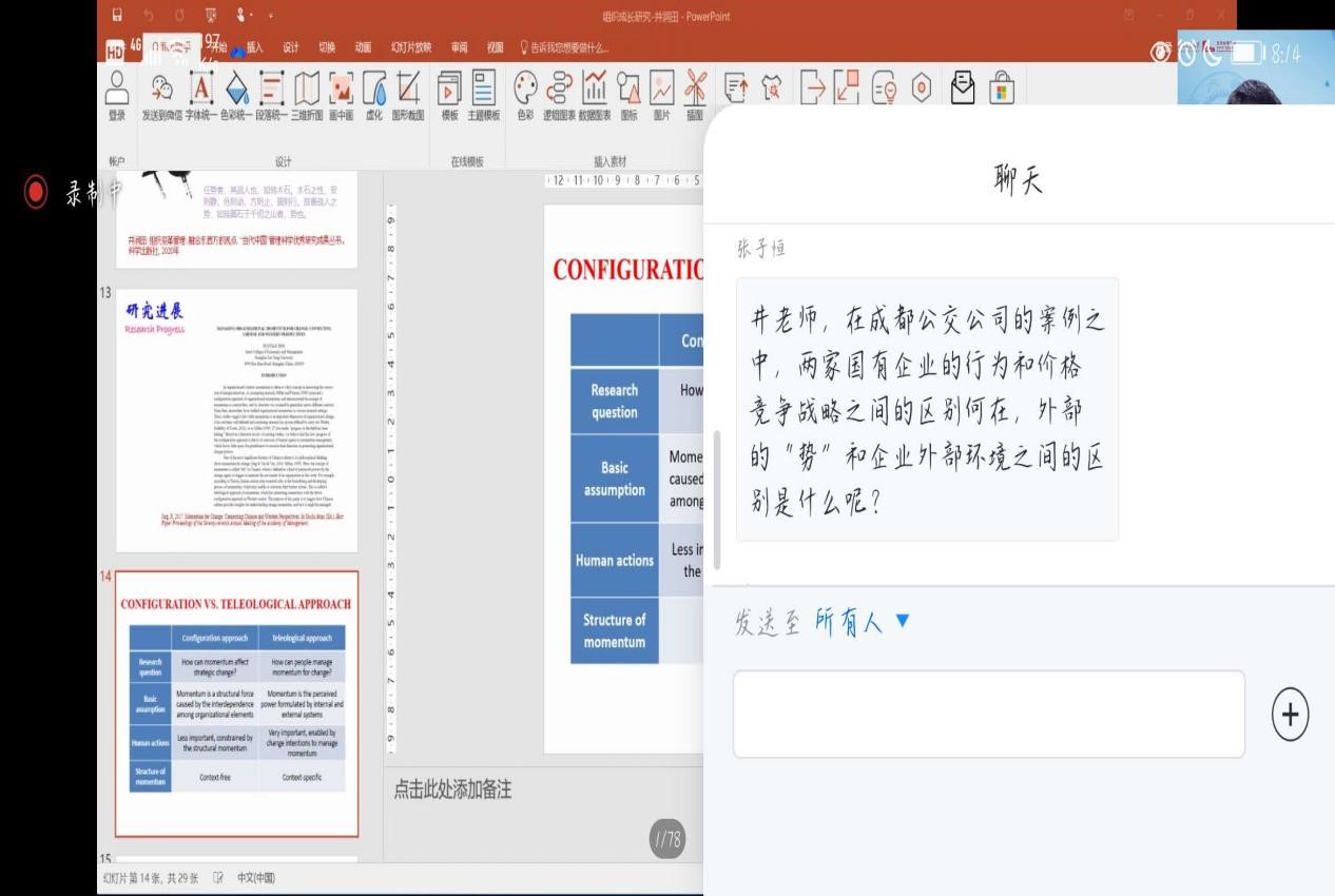 本次讲座主题为组织成长的底层逻辑。讲座伊始,井润田教授开门见山的将组织的成长比喻成树木的年轮,阐明了“组织的成长是一个周而复始、自内而外的变化过程”的观点。接着,井润田教授借用红星美凯龙的案例以及亚当斯密的思想引出了“势”的概念。在讲解“势”这一概念时,井润田教授从物理的运动势能展开,从前期研究中遇到的棘手问题讲起,一直涉及到理论模型、新的反思、研究进展、数据理论化、经验证据等多个方面。他深挖外国相关文献的相似论述,加深了同学们对“势”这一概念的理解。最后,井润田教授给出了他的管理建议与思考发现。在与同学们的互动交流中,面对同学们提出的有关概念理解、不同类别企业优劣势区分以及企业内部变革的借“势”而为等疑问,井润田教授细细道来,逐一解答。最后,我院师生向井润田教授表示了最真挚的感谢,本次讲座圆满结束。