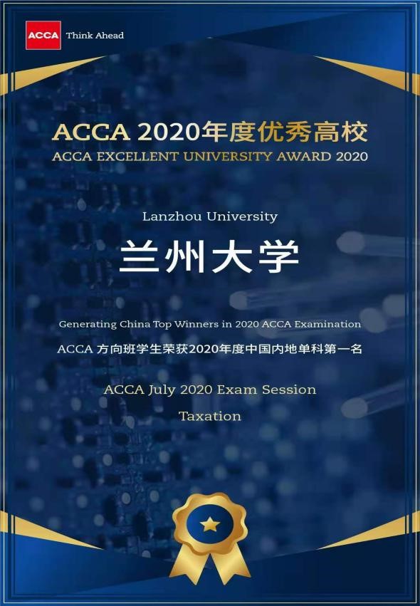 本次“ACCA2020年度优秀高校”奖项荣誉是对兰州大学管理学院在2019—2020学年在ACCA教育领域的再续肯定。在新一轮一流本科专业建设中,兰州大学管理学院将继续结合ACCA自身特色,创新发展,努力培育独具特色的会计学专业人才培养项目。