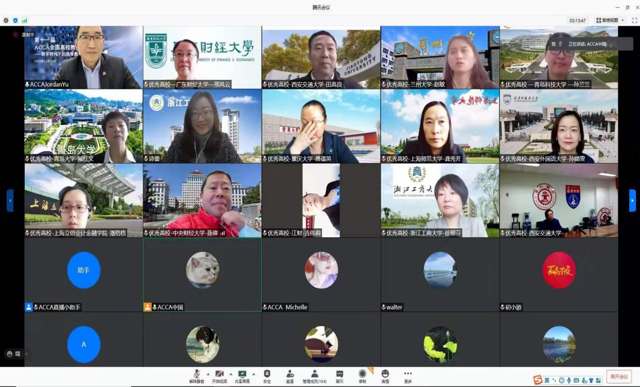 第十一届ACCA全国教育峰会暨“优秀院校奖项”颁奖活动于11月12日在腾讯会议举行,兰州大学管理学院荣获“ACCA2020年度优秀高校”奖项并应邀出席研讨会和颁奖典礼。本次研讨会由ACCA主办,国内多所ACCA合作院校受邀参与,包括兰州大学、西安交通大学、重庆大学、浙江工商大学、浙江财经大学、江西财经大学等,中国区共有12所高校荣获ACCA年度优秀高校。
