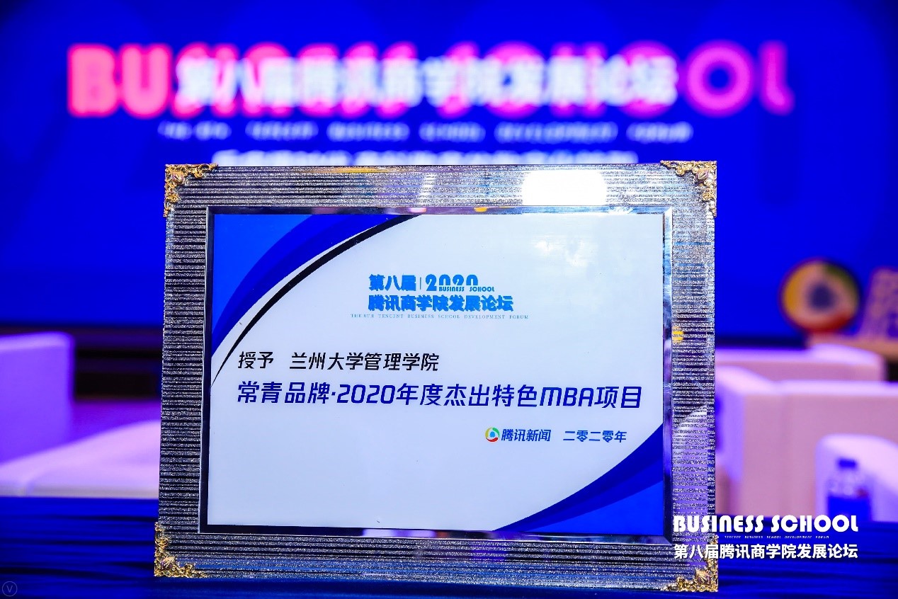 2020年11月12日,2020年第八届腾讯商学院发展论坛在北京成功举办,国内众多知名商院院长、主任,权威机构负责人齐聚一堂,以“后疫情时代,商科教育的数字化转型”为主题,探讨中国商学院在新时代下的创新发展。兰州大学管理学院受邀参加并荣获“常青品牌﹒2020年度杰出特色MBA项目”奖项,院长何文盛教授荣获“2020年度中国商科教育杰出贡献人物”。