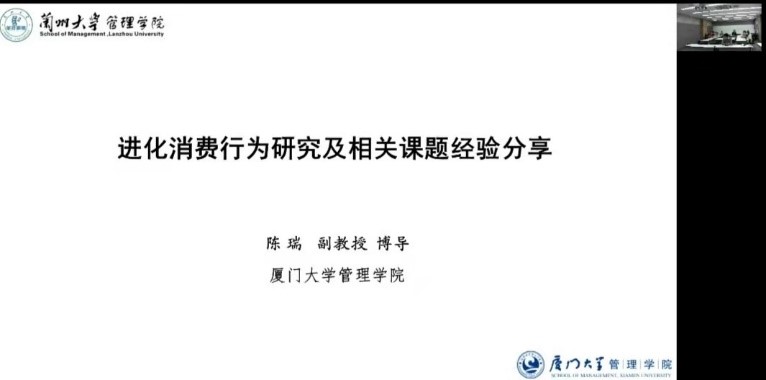 2020年11月23日,应管理学院服务管理研究所马建峰副教授邀请,厦门大学市场学系陈瑞副教授为我院师生开展了以“进化消费行为研究及相关课题经验分享”为主题的学术讲座,讲座由马建峰副教授主持。