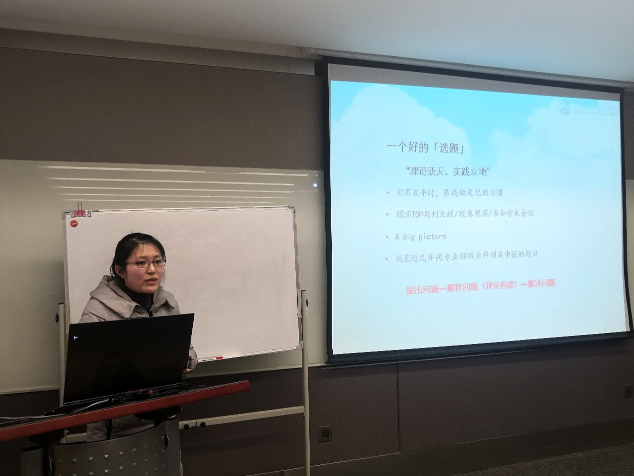 最后,罗肖依教师从选题、研究框架和研究方法上进行了经验的分享,罗肖依老师提到,选题一定要关注宏观问题,多浏览近几年自科选题,结合个人兴趣进行选择,研究框架一定要详实具体,研究方法尽量多运用有一定技术含量的方法,在方法上抓住评审专家的眼球。另外。罗肖依教师讲到平时要注意积累,多参加学术会议,了解学科前沿动态,有利于更好的选题。