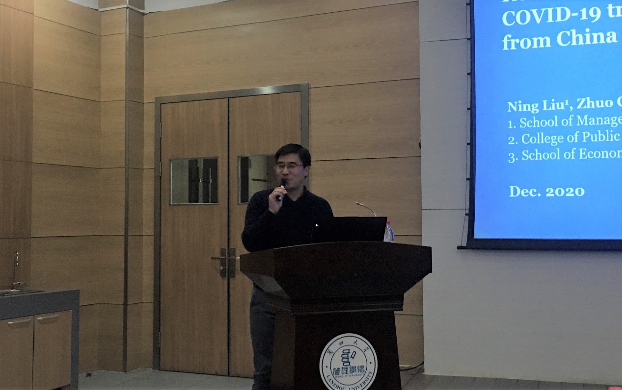 大会伊始,刘宁老师做了题为Role of media coverage in mitigating COVID-19 transmission: Evidence from China的学术分享。他将今年的疫情控制与媒体报导结合,通过一系列的数据挖掘与分析,详细地说明了疫情控制程度与媒体报导程度间的关系。刘老师的讲解深入浅出、生动活泼,同学们纷纷表示收获颇深。