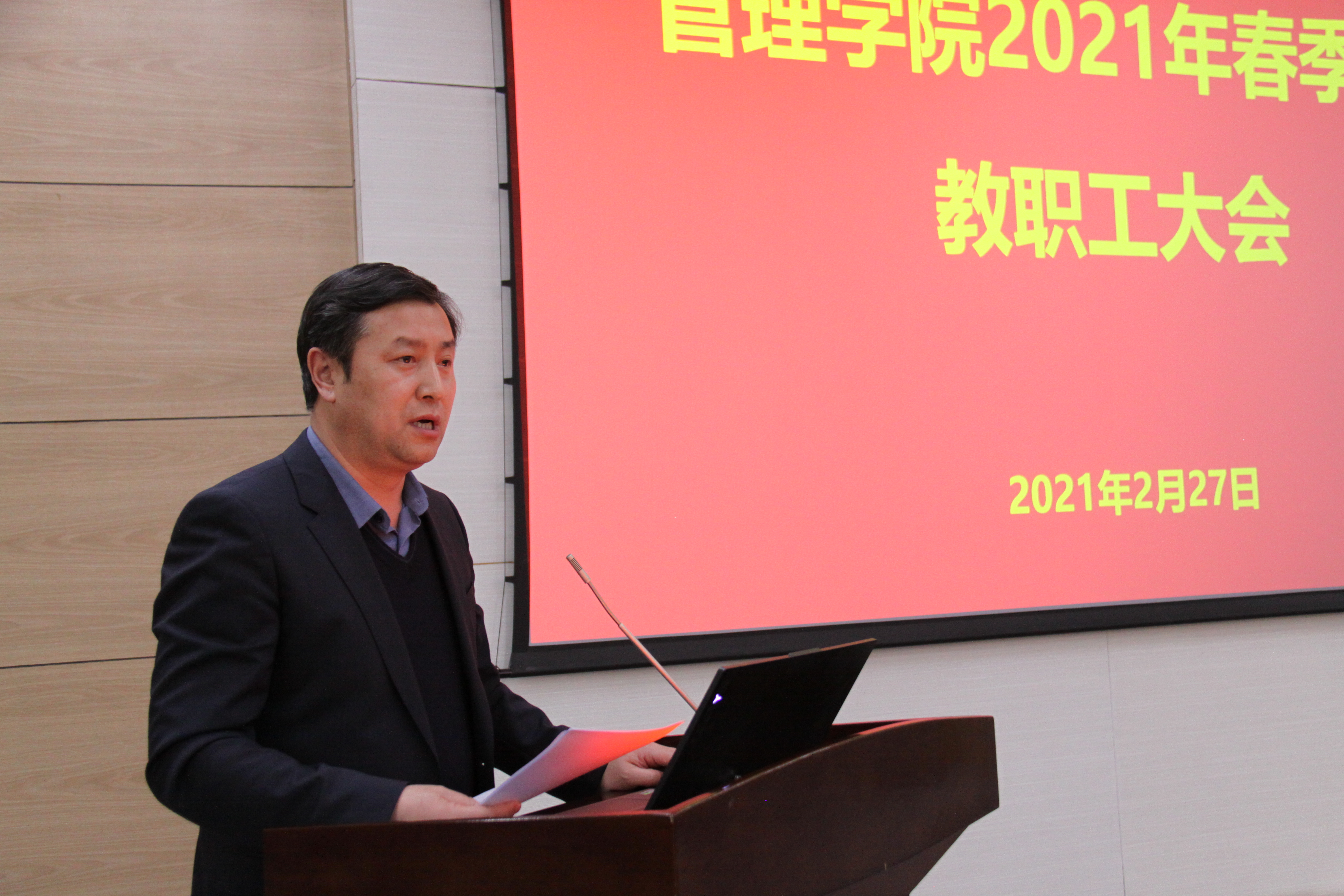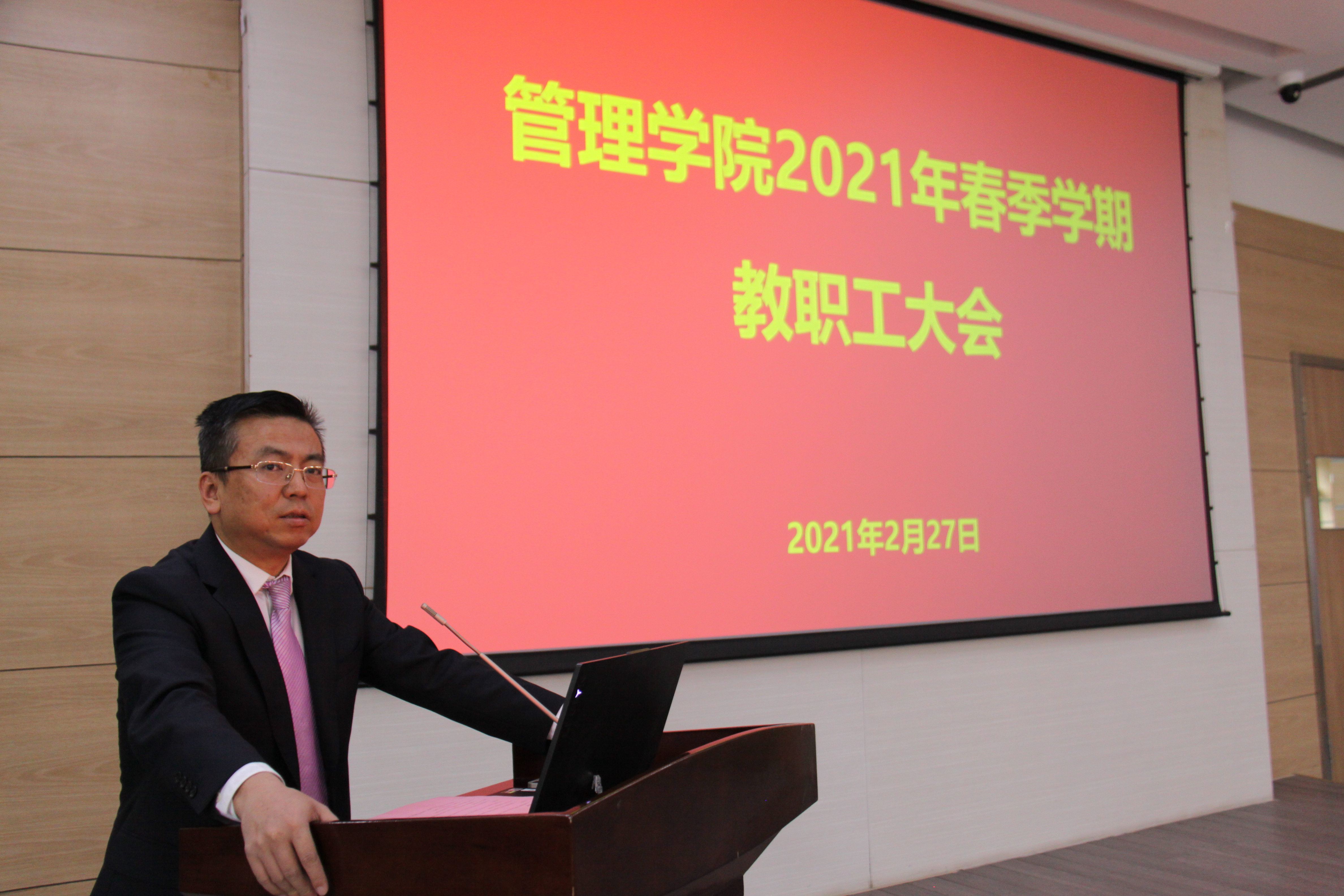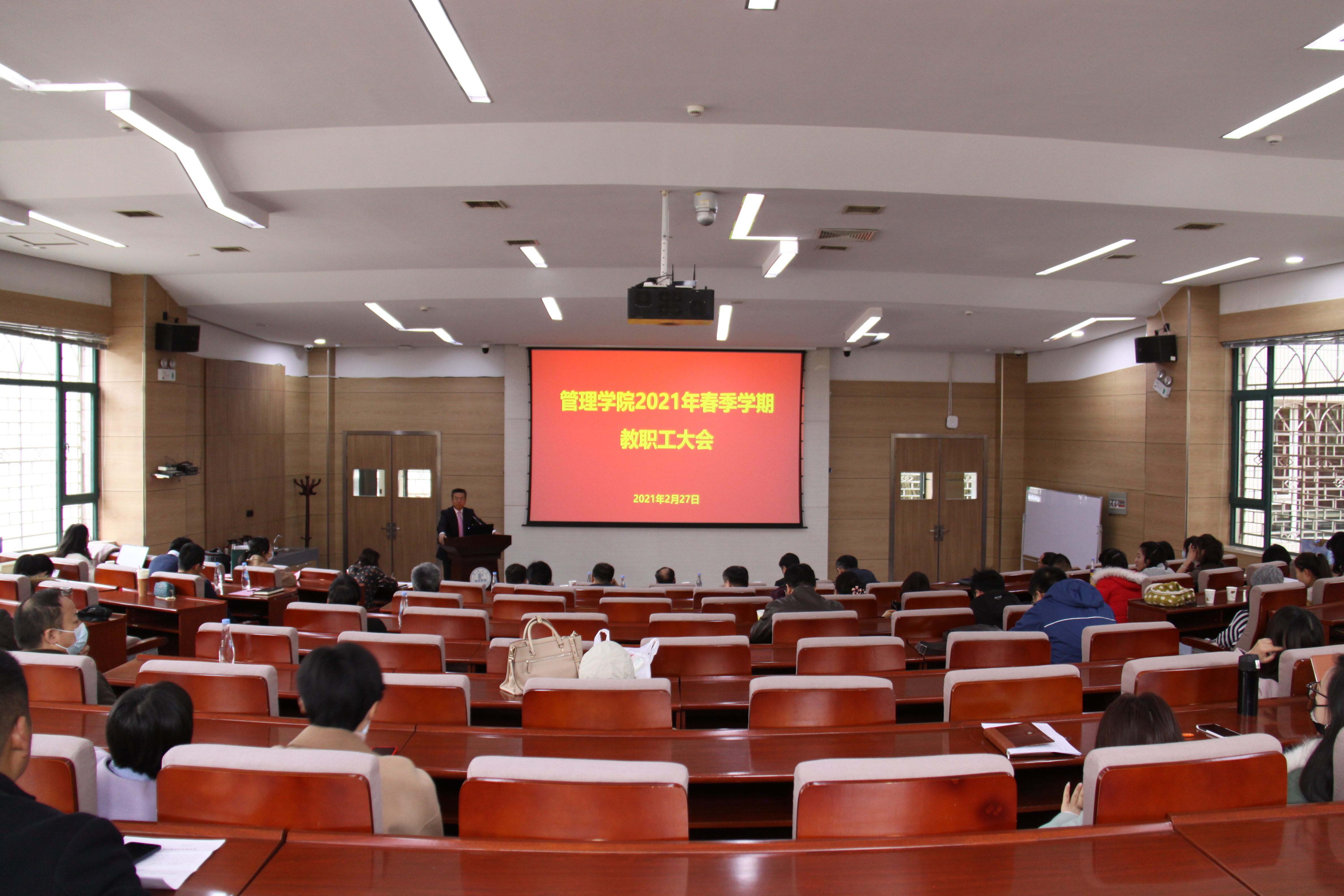 2月27日下午,管理学院在杏林楼报告厅召开2021年春季学期教职工大会,会议由何文盛院长主持。