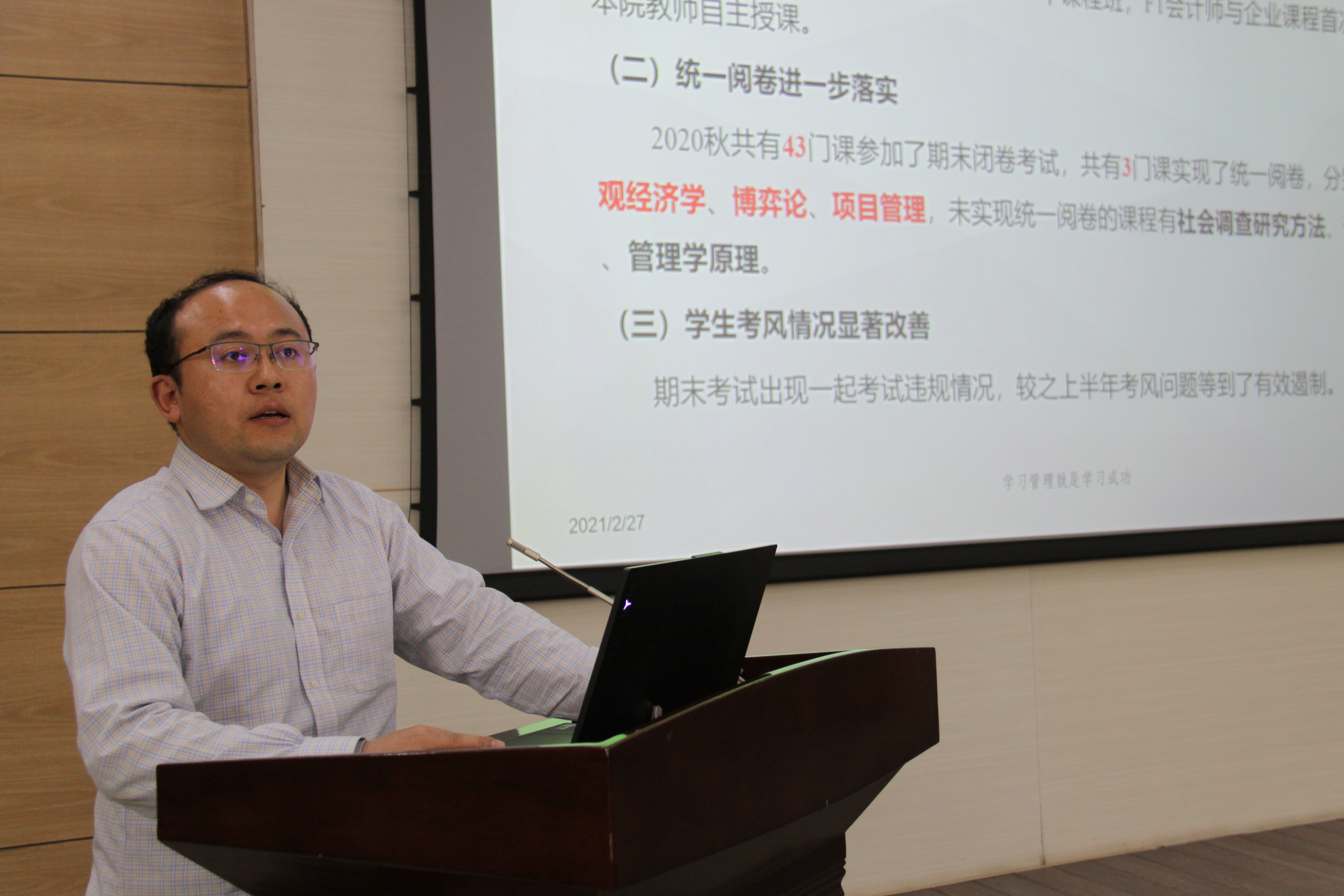 王学军副院长通报了上学期本科教学工作,包括教学运行、一流专业与一流课程建设、教育教学改革研究、招生宣传,上学期亮点工作以及本科教学中存在的主要问题,安排部署了本学期本科教学的重点工作。