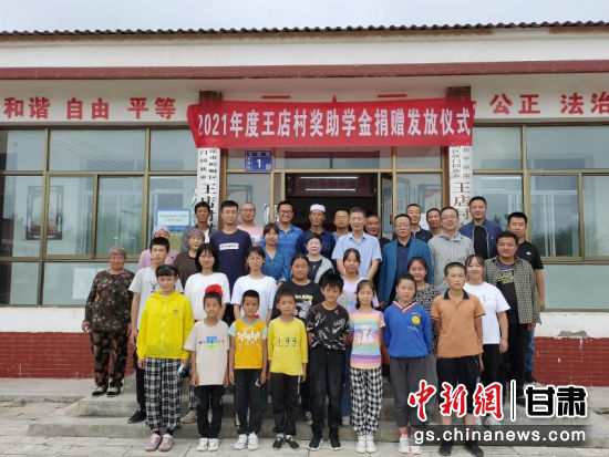 8月21日下午,平凉市崆峒区峡门回族乡王店村举办奖学金捐赠发放仪式。图为捐赠仪式现场。