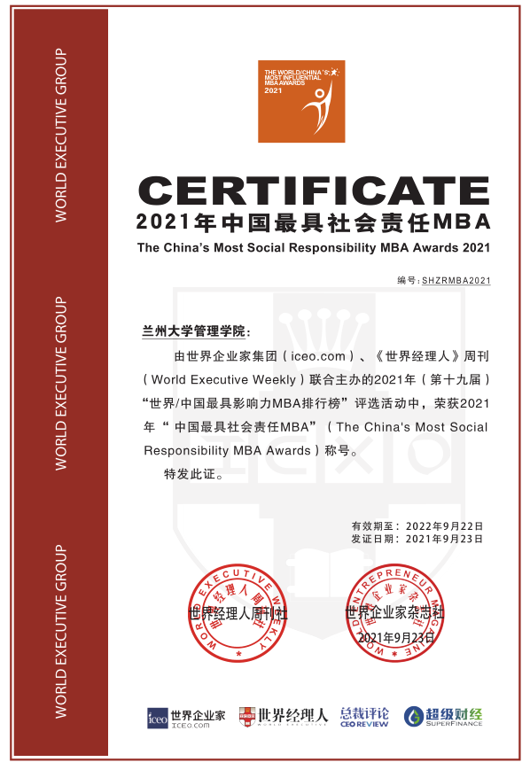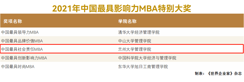 【喜讯】兰州大学管理学院荣获“中国最具社会责任MBA”特别大奖