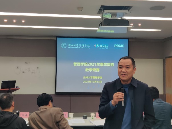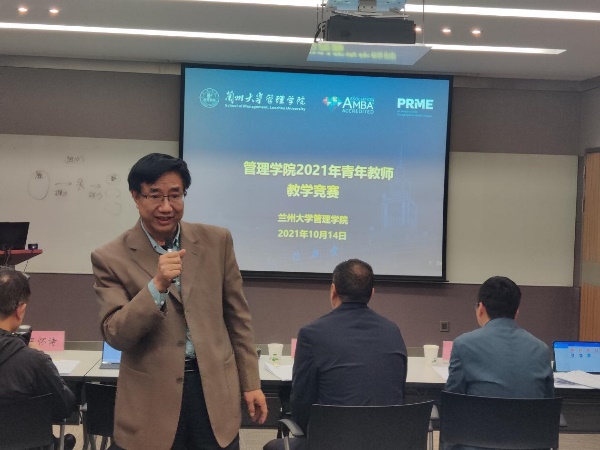 教师是立教之本、兴教之源。为提高青年教师的教学水平,促进青年教师的全面发展,根据《关于举办兰州大学第六届青年教师教学竞赛的通知》和《关于举办兰州大学管理学院2021年青年教师教学竞赛的通知》要求,10月14日下午,管理学院在本部齐云楼204成功举办2021年青年教师教学竞赛,田中禾教授、李映洲教授、洪兆富教授、王怀诗副教授、雷亮副教授、赵雁海副教授6位老师担任本次竞赛的评委,赵雁海副院长同时担任此次竞赛主持人,共有10位青年教师参加此次竞赛。